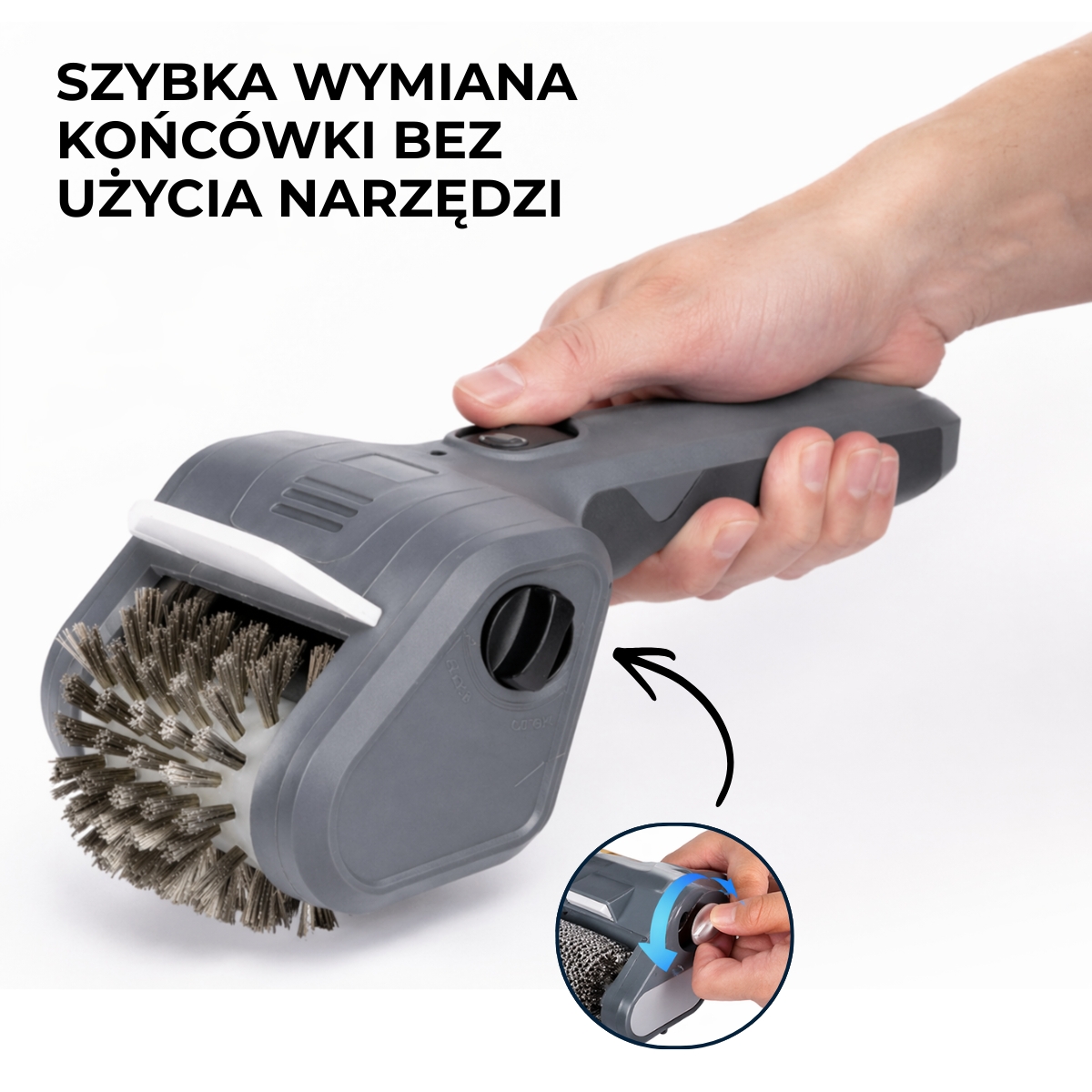 Obrotowa głowica 360° dociera między pręty rusztu i czyści dokładnie każdą powierzchnię – bez użycia siły i męczącego szorowania.
